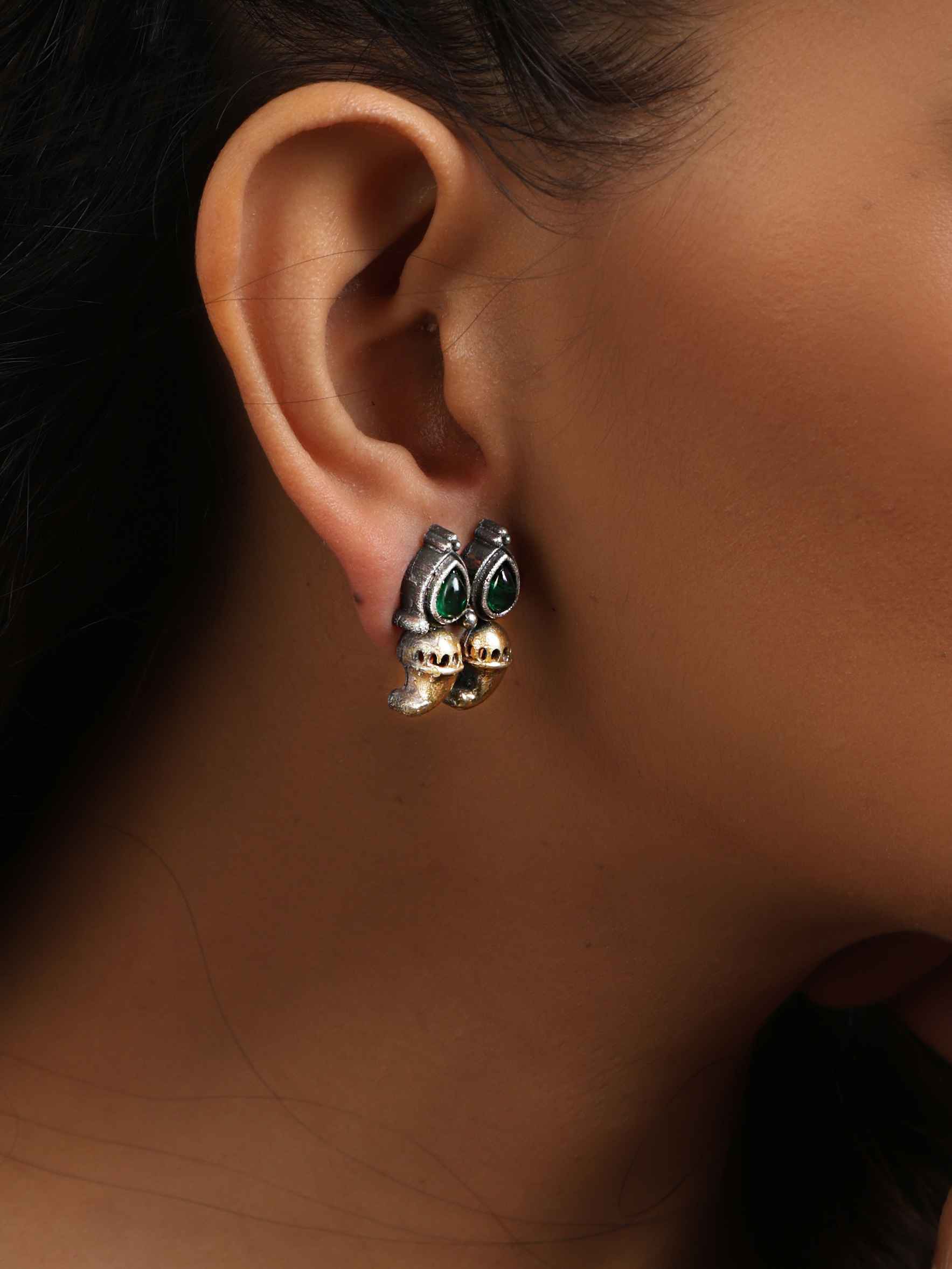 trueBrowns Silver Gold Tone Stud EarringsDescription Silver gold tone abstract stud earring with post and back closure. Style it with a Kurta, Co-o...