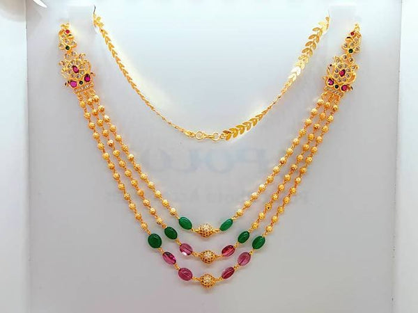 Designer Multicolor Stone Layer NecklacePackage Details: 1 NecklaceBase Material:AlloyGem Stones : CZ, Kundans, Emeralds, RubiesPlating : GoldProdu...