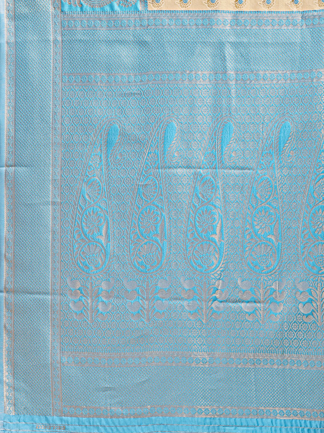 Astita Cream & Sky Blue Banarasi silk Woven Zari Work Traditional Tassel Saree