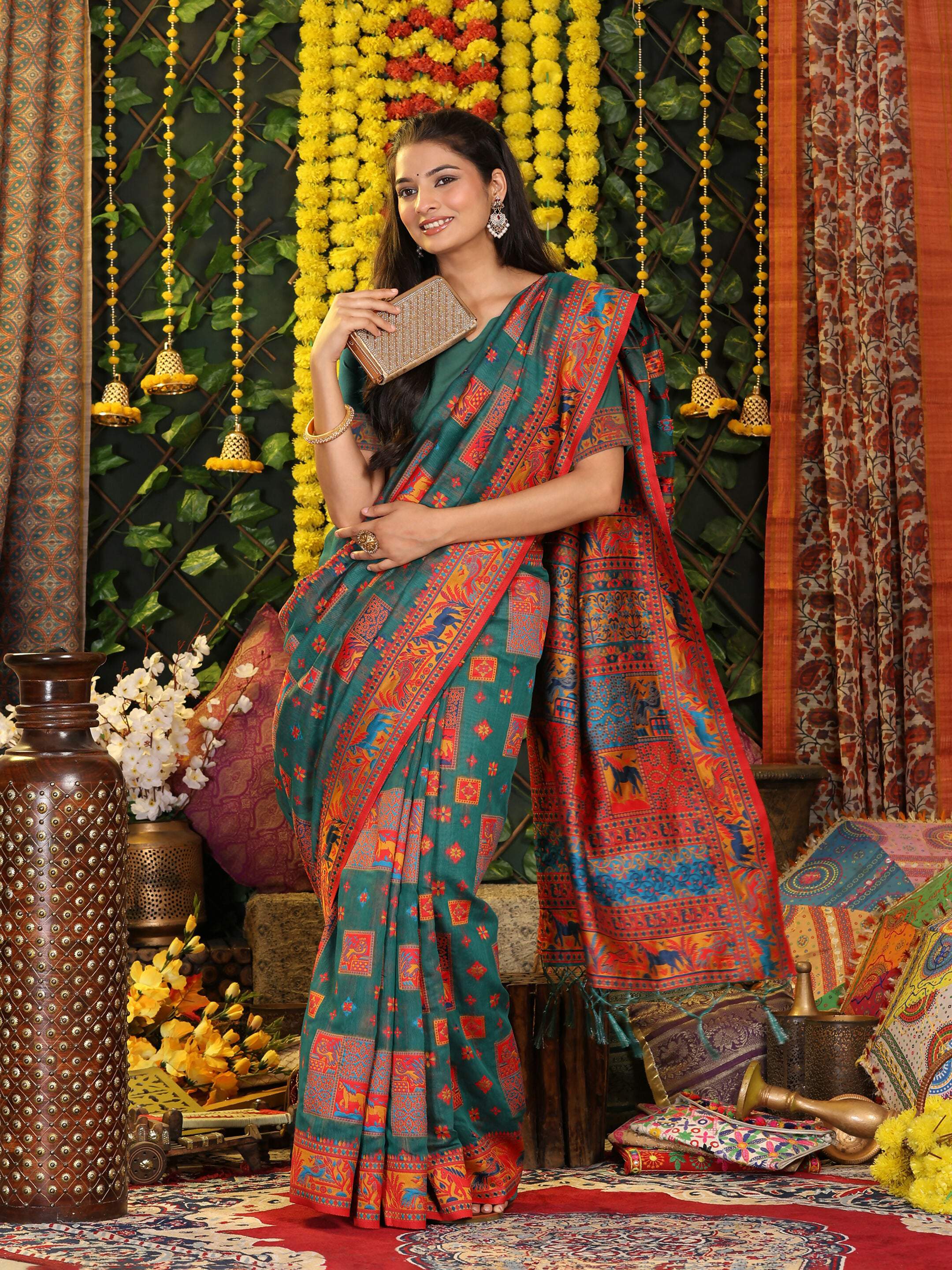 • Saree Color: Rama Green