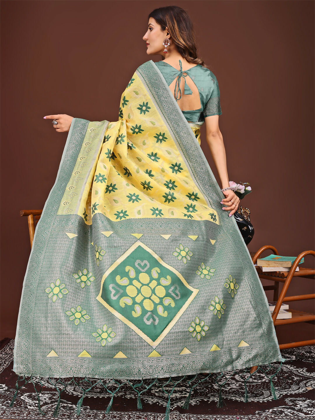 Astita Sajni Yellow Linen Cotton Saree Color : Yellow Saree Fabrics : Linen Cotton Blouse Fabrics : Linen Cotton Saree Length : 5.5 Meter Blou...