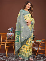 Astita Sajni Yellow Linen Cotton Saree