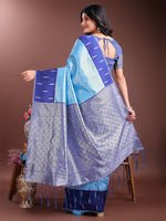 Astita Sky Blue Lichi Silk Woven Zari Work Traditional Tassel Saree