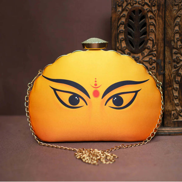 Joban Fashion Durga Eyes Yellow Printed D-Shape Clutch - YellowAbout the Product: No. of Components: 1 Dimensions : Length: 9 Inches, Width: 6 In...