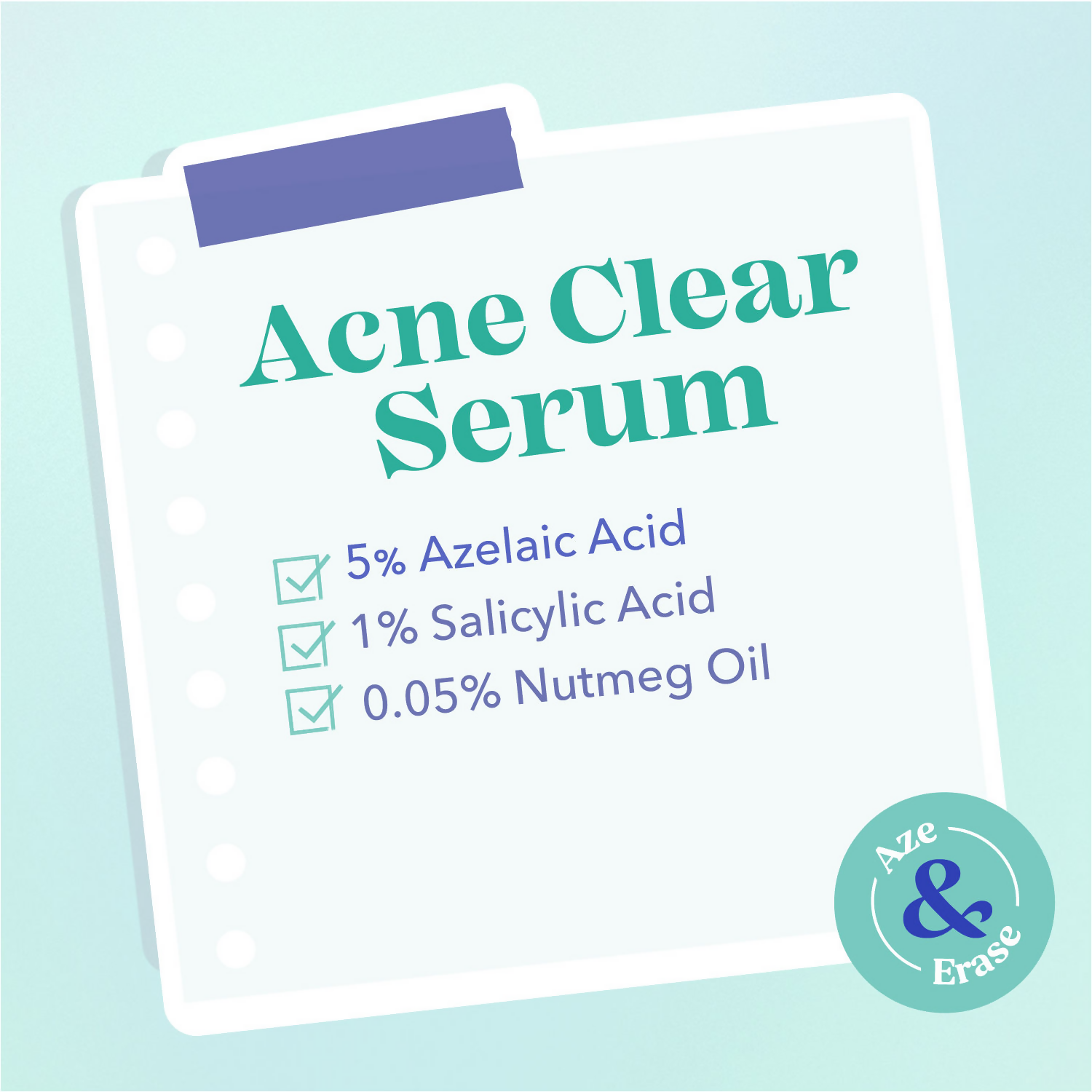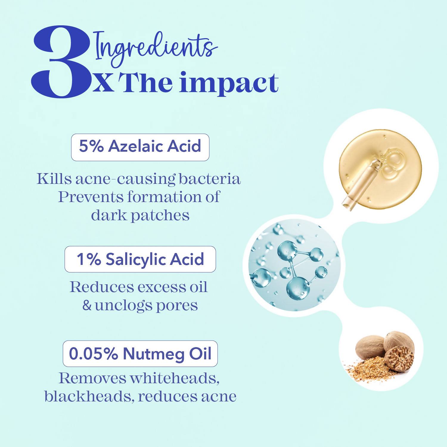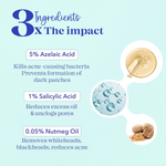 Blue Heaven Acne Clear Serum with 5% Azelaic Acid +1% Salicylic Acid + 0.5% Nutmeg OilHow to use: Step 1 : Take 4-5 drops & dab with fingertips...