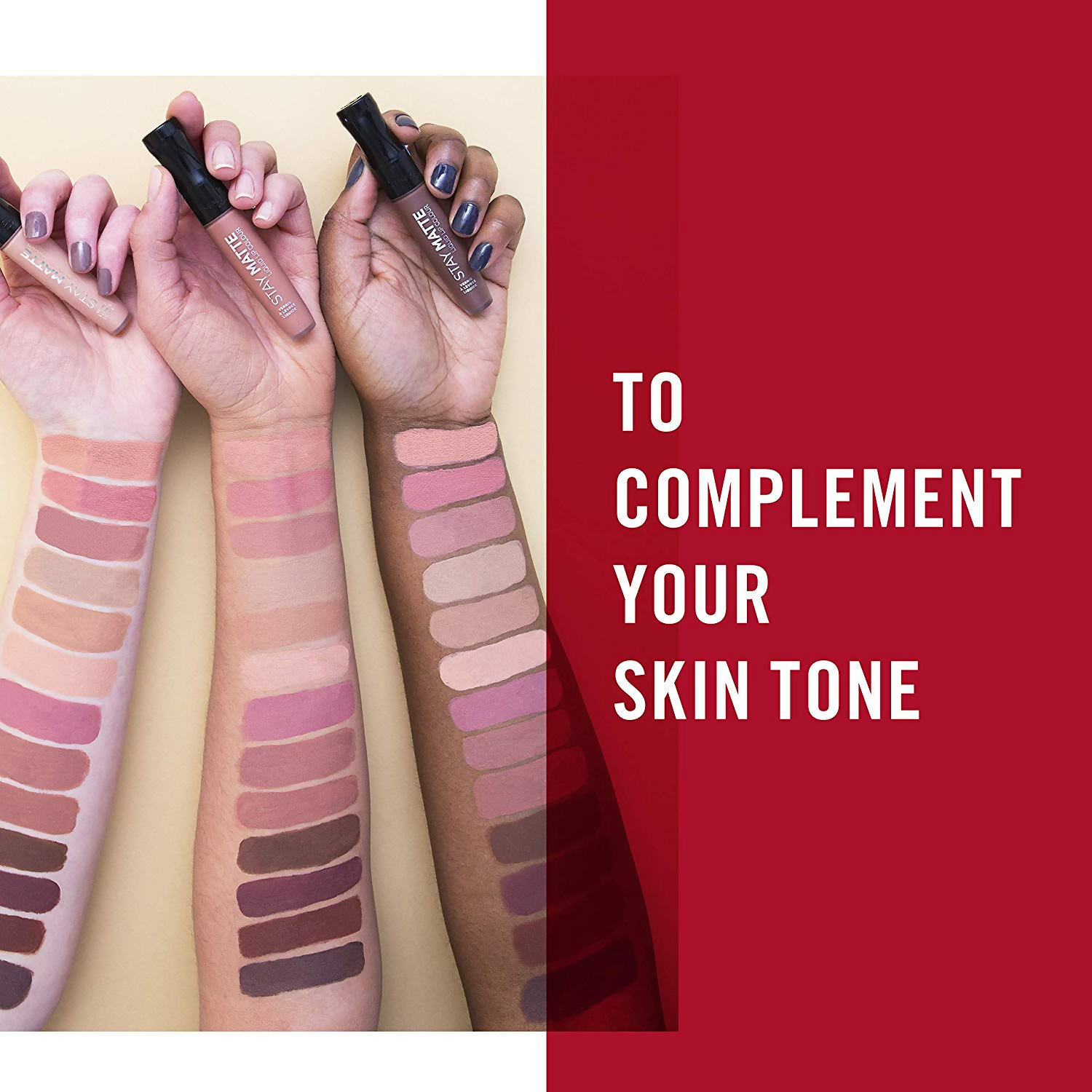 • Rimmel London Stay Matte Liquid Lip Colour delivers high density colour with a velvety matte finish from the very first stroke. Its long wearing, kiss-proof, touch-proof and water-proof formula stays intact without fading or bleeding for up to 12 hours. The lightweight formula wears comfortably throughout the day while the flat doe foot applicator allows for precise application.