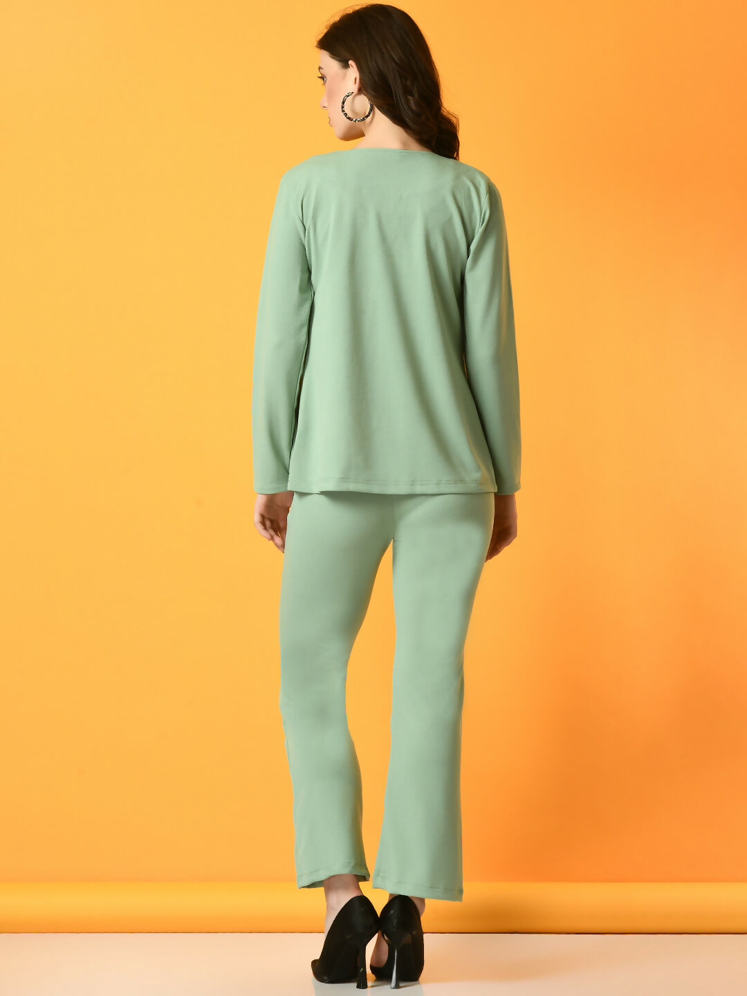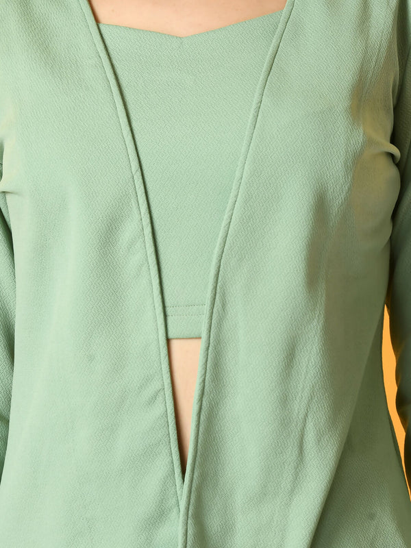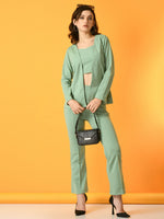 Myshka Women's Green Solid Coat With Trousers Color: Green Top Type: Coat Bottom Type: Trousers Dupatta: No Dupatta Fabric: NA Fabric: Poly...