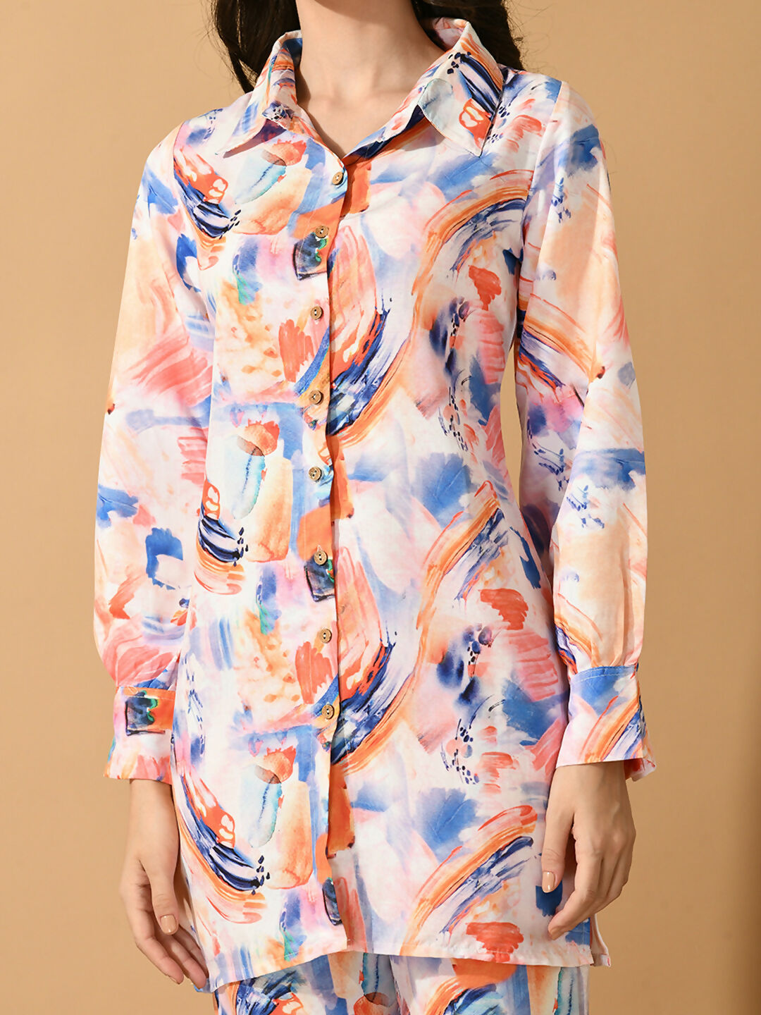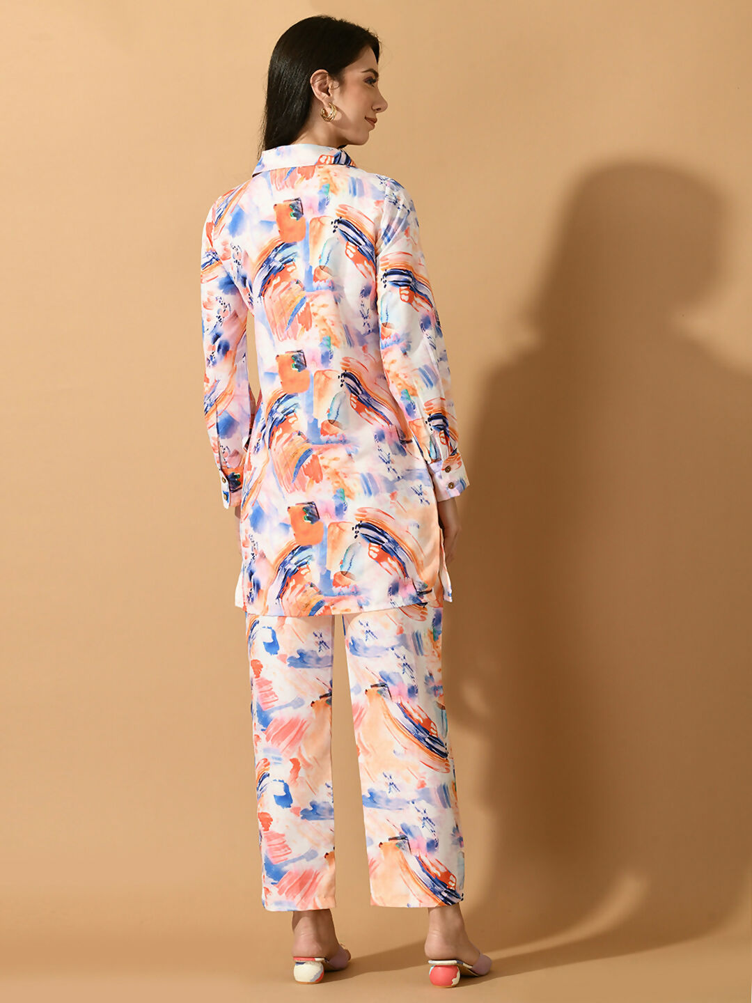 Myshka Women's Multi Printed Shirt With Trousers - S