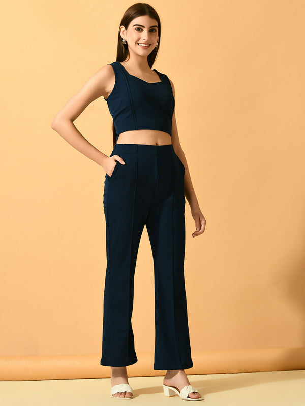 Myshka Women's Navy Blue Solid Top With Trousers - S
