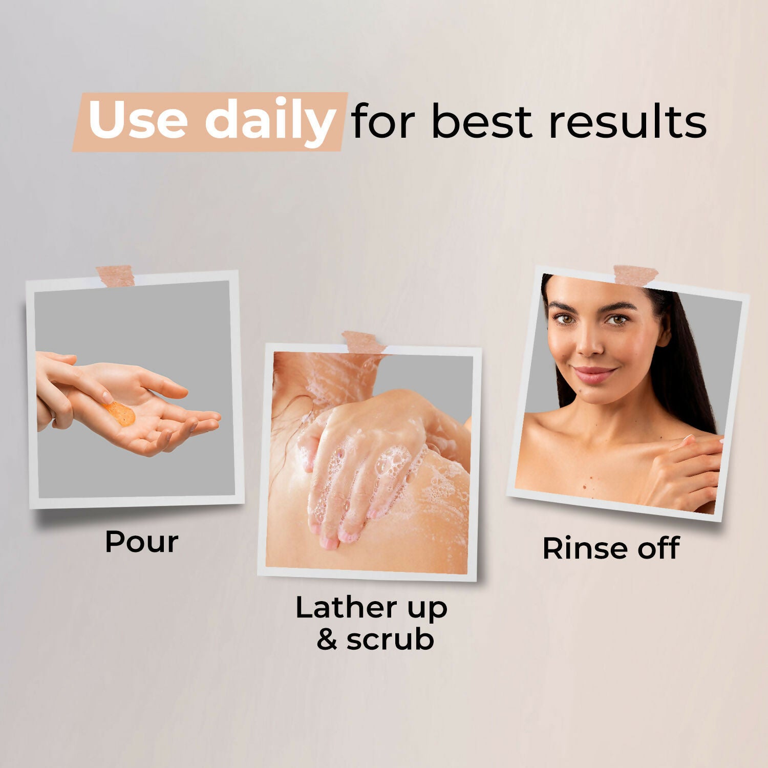 • Pour the body wash on a wet loofah for the best experience. Lather up on wet skin, rinse off & feel refreshed