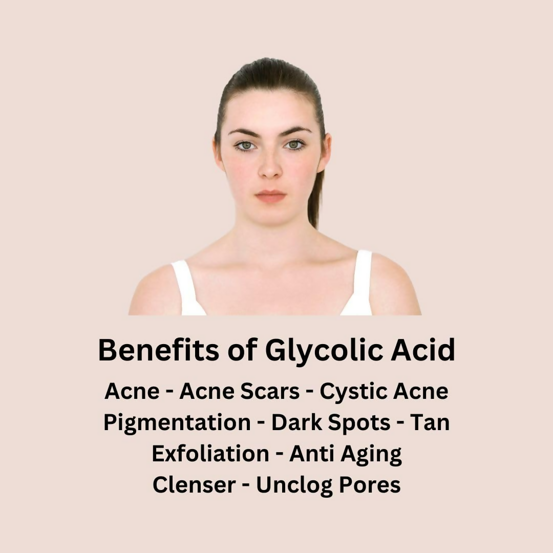 • Potent Exfoliant: Glycolic acid is an alpha-hydroxy acid renowned for its exfoliating properties, gently sloughing off dead skin cells.