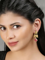 Joban Fashion Women Pink Stone Matte Gold Earrings
