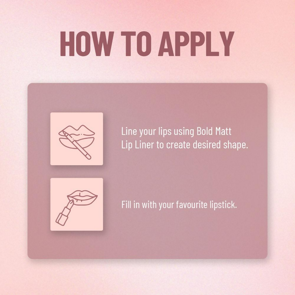 • The Swiss Beauty Bold Matt Lip Liner comes in 12 rich and highly pigmented shades that complement a wide range of lipstick colors and skin tones. From passionate reds to neutral nudes, the perfect shade for every occasion. The creamy and smooth texture of the lip liners glides effortlessly onto your lips, allowing for precise and defined lines.