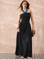 A timeless and elegant off-shoulder dress in a classic black color. The off-shoulder design highlights the collarbones, offering a chic and feminine silhouette. It's a versatile dress perfect for a night out, a formal dinner, or a cocktail party.