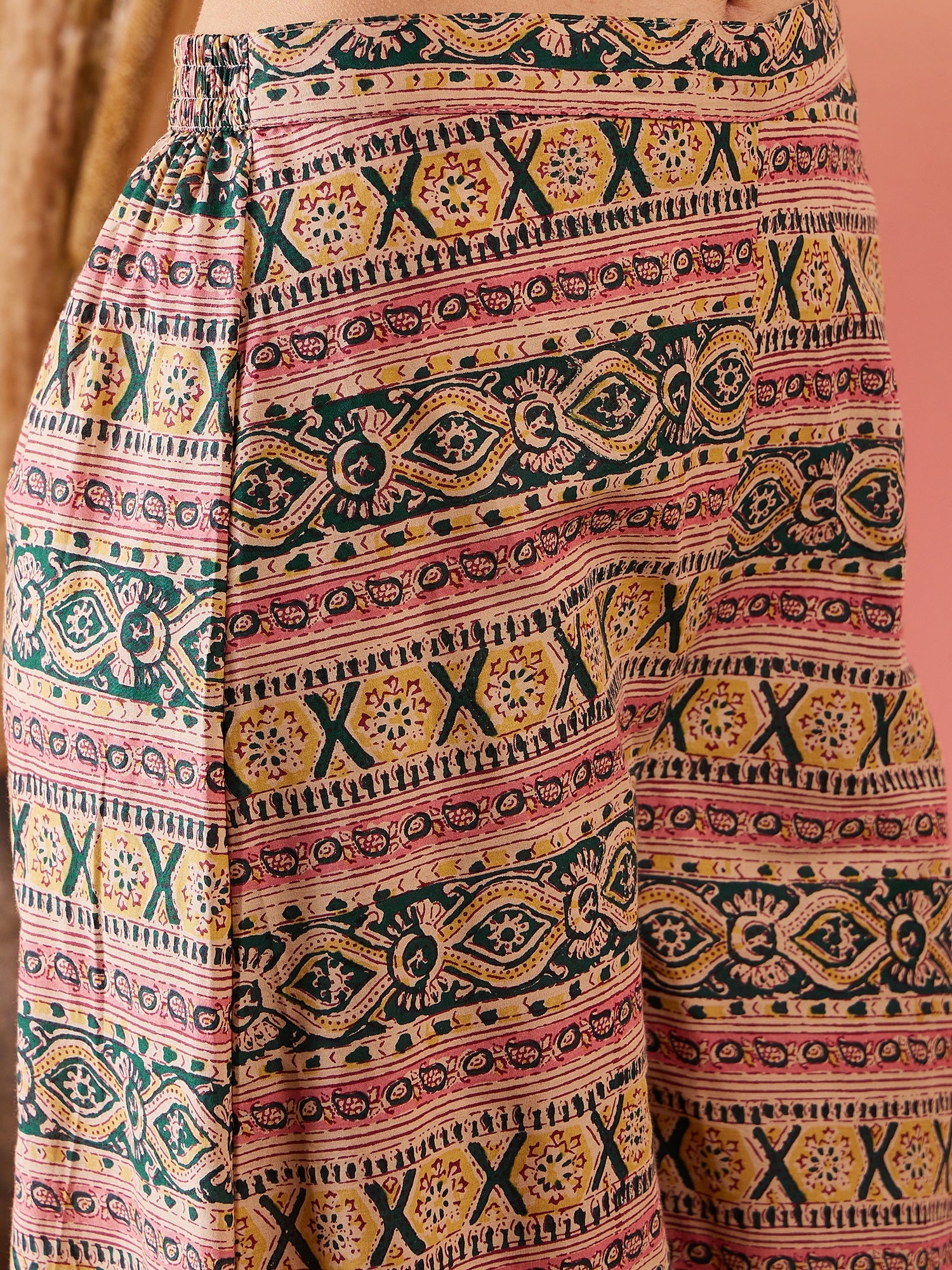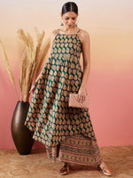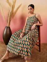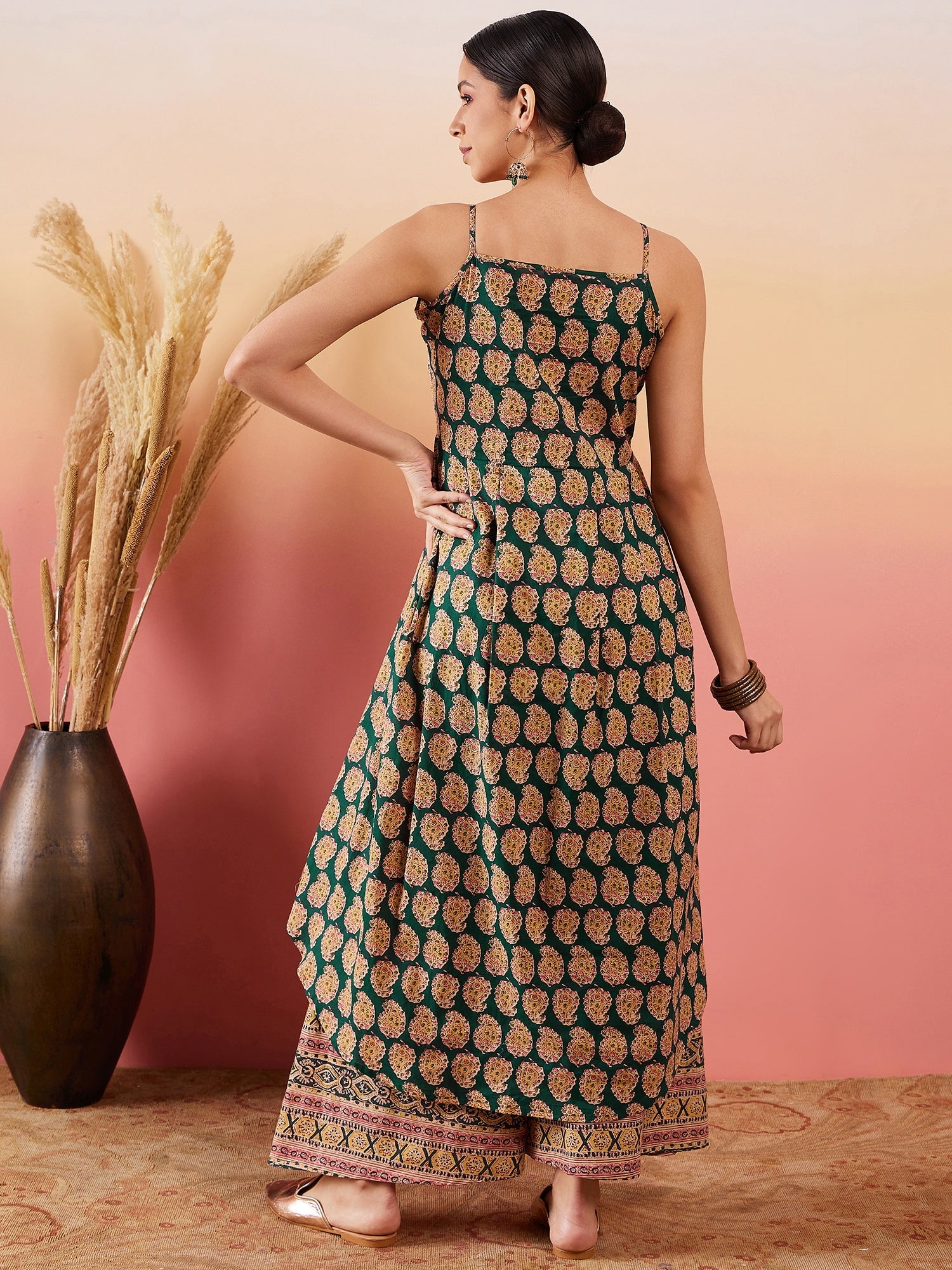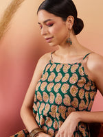 InWeave Dark Green Paisley Print Strappy Printed Palazzo Set
