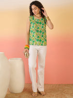InWeave Pear Green Green Rose Jaal W/S Top - Distacart