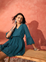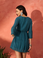 InWeave Teal Lurex Dress With LaceThe Teal Lurex Dress with Lace is an elegant and eye-catching garment perfect for special occasions. This dress i...