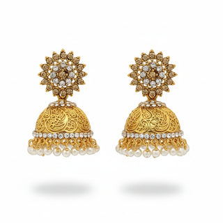JS Fashion Temple Design Full Stone Jhumka in Rajwadi Polish for Women & Girls