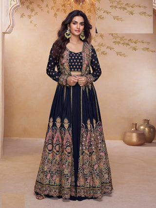 Aarshi Fashions Navy Blue Shimmer Wedding Gowns