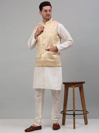 Jompers Men's Chikankari Embroidered Kurta with Pyjama - Beige