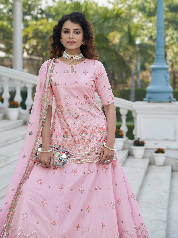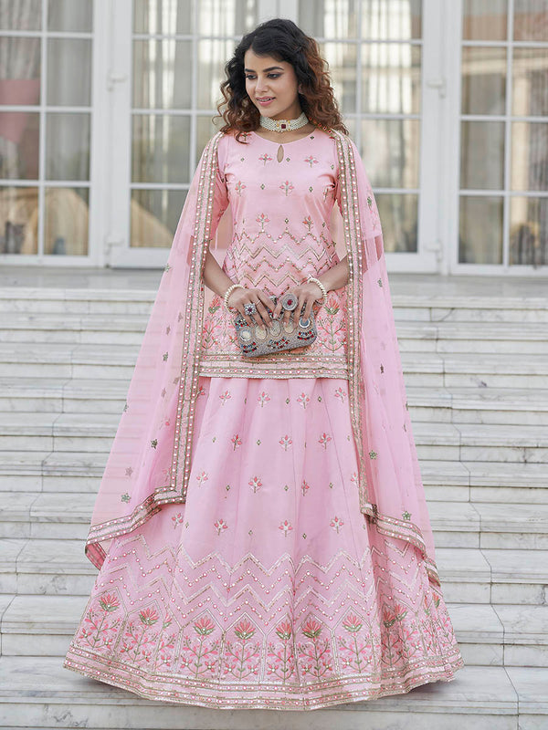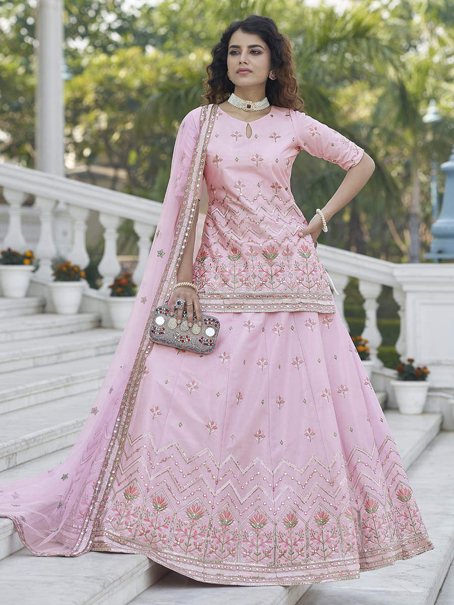 Myra Baby Pink Embroidered Designer Lehenga - Distacart