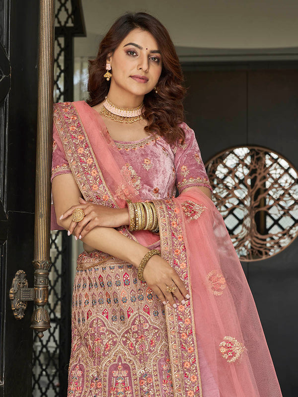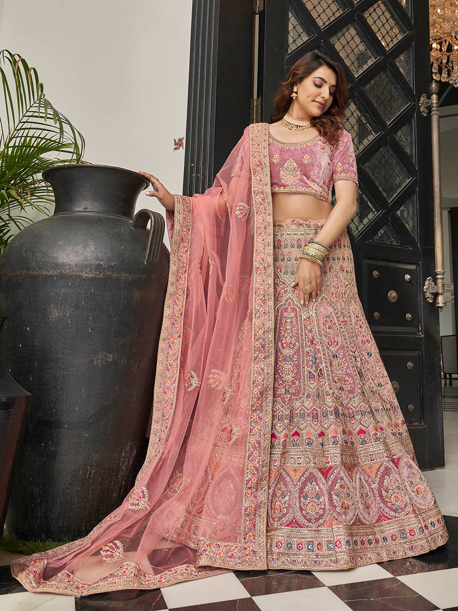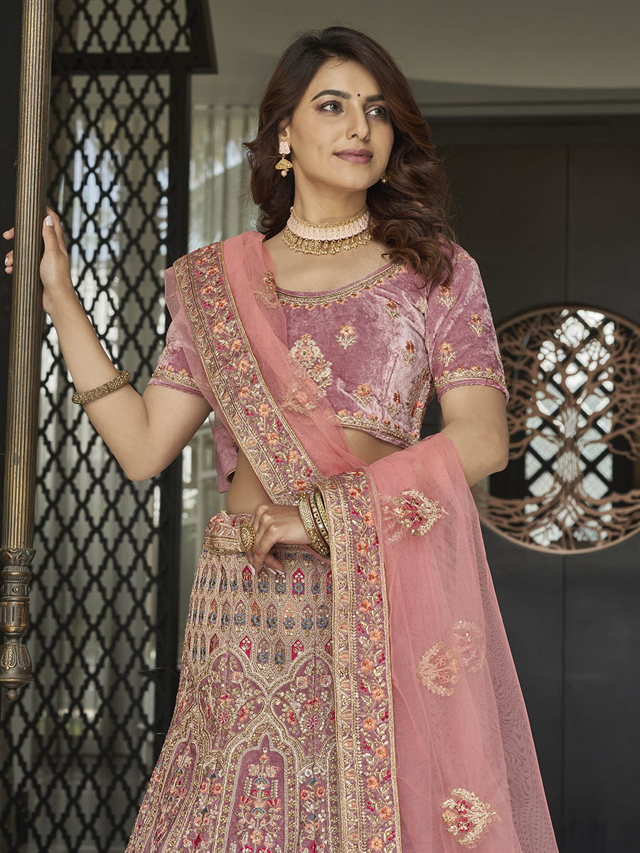 Myra Mauve Velvet Embroidered Designer Lehenga - Distacart