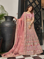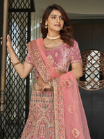Mauve Velvet Embroidered Designer Lehenga features a velvet lehenga with velvet choli with soft net dupatta. Embroidery is completed with thread , zari , dori ,sequins and zarkan. This Style is made in India and checked by hand to ensure high quality.
