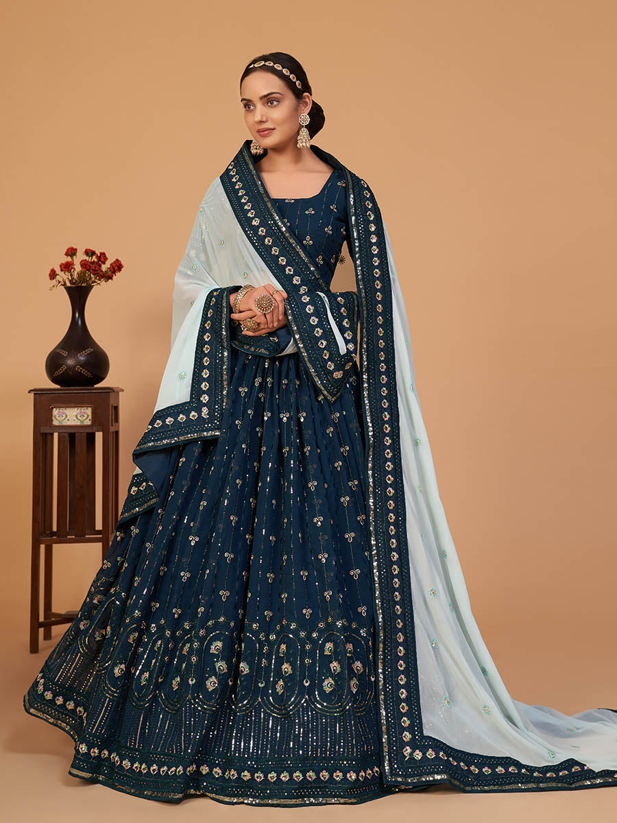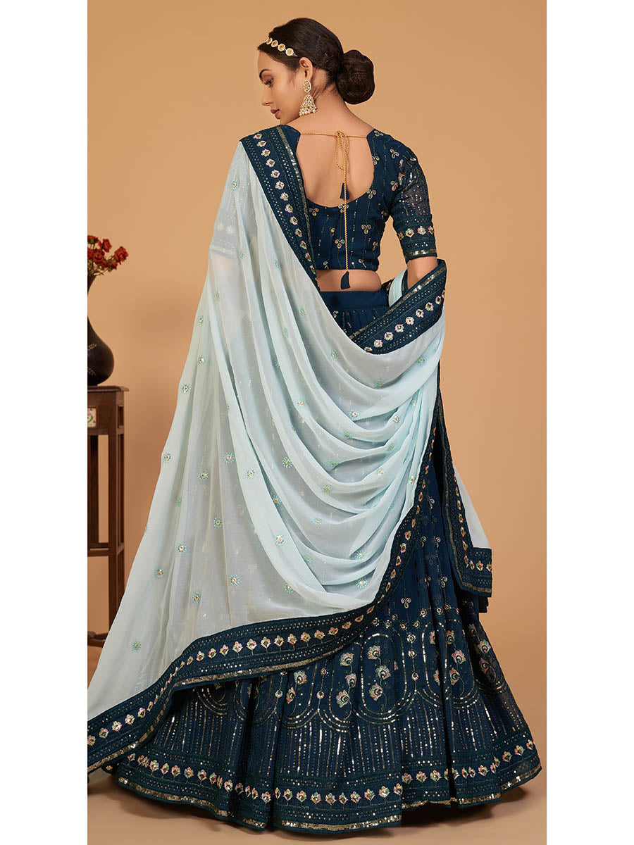Myra Morepeach Georgette Embroidered Designer Lehenga - Distacart