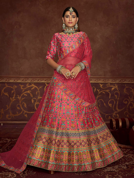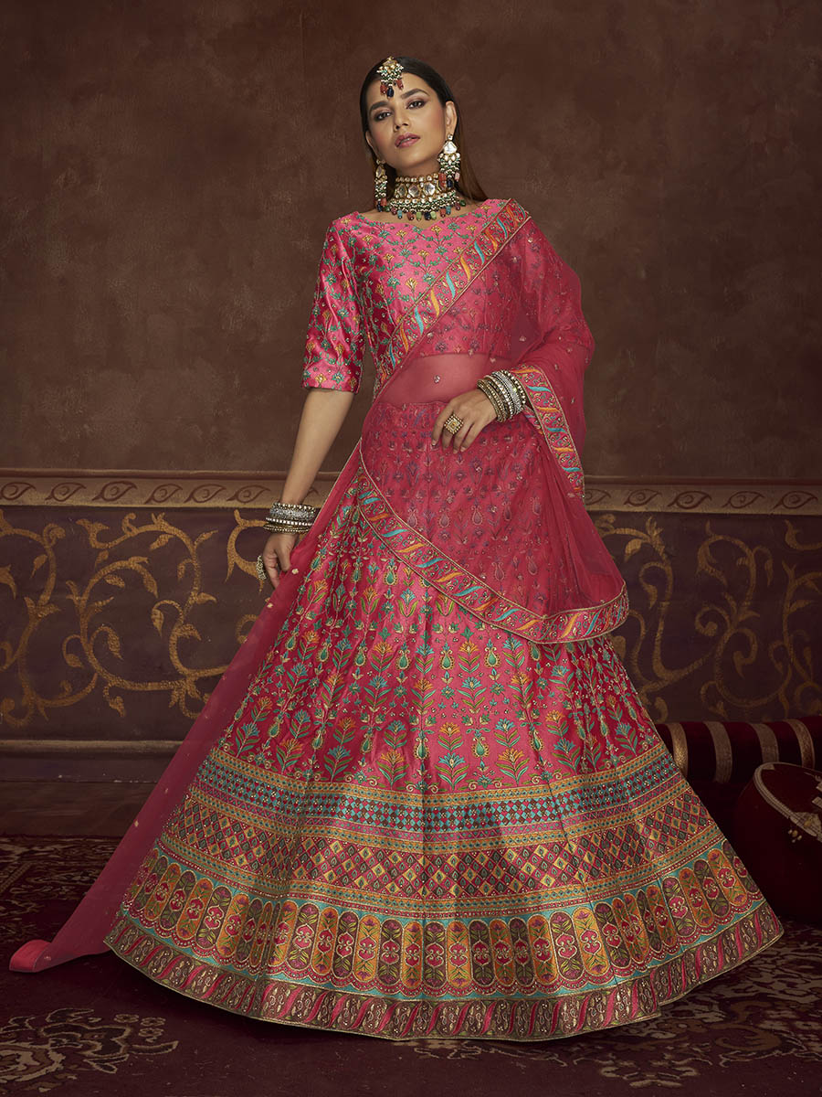 Myra Pink Art Silk Embroidered Designer Lehenga - Distacart