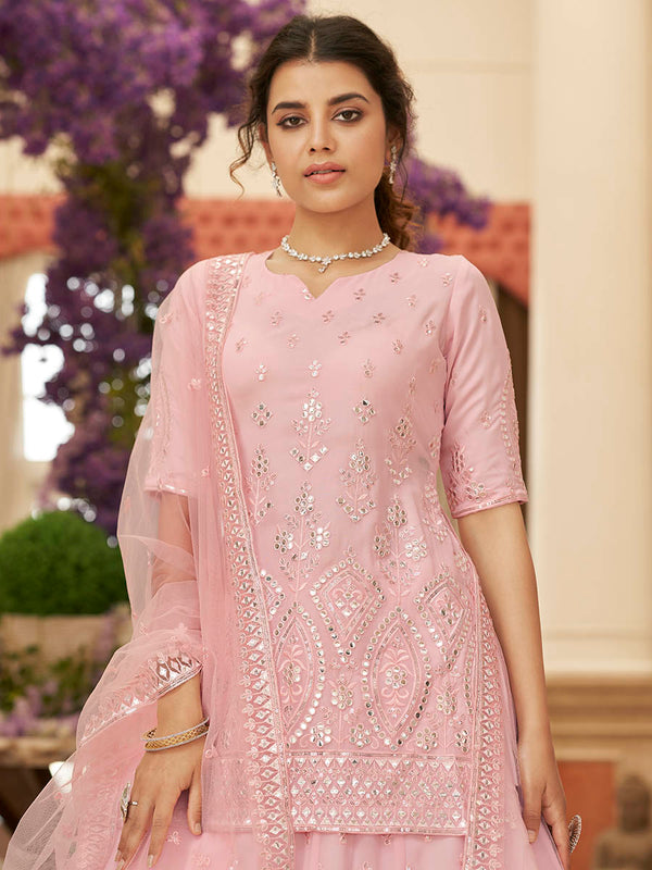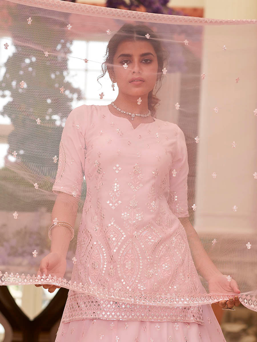 Myra Pink Georgette Embroidered Designer Lehenga - Distacart
