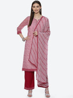 Biba Women Pink Striped Sequinned Kurta with Palazzos & With Dupatta
