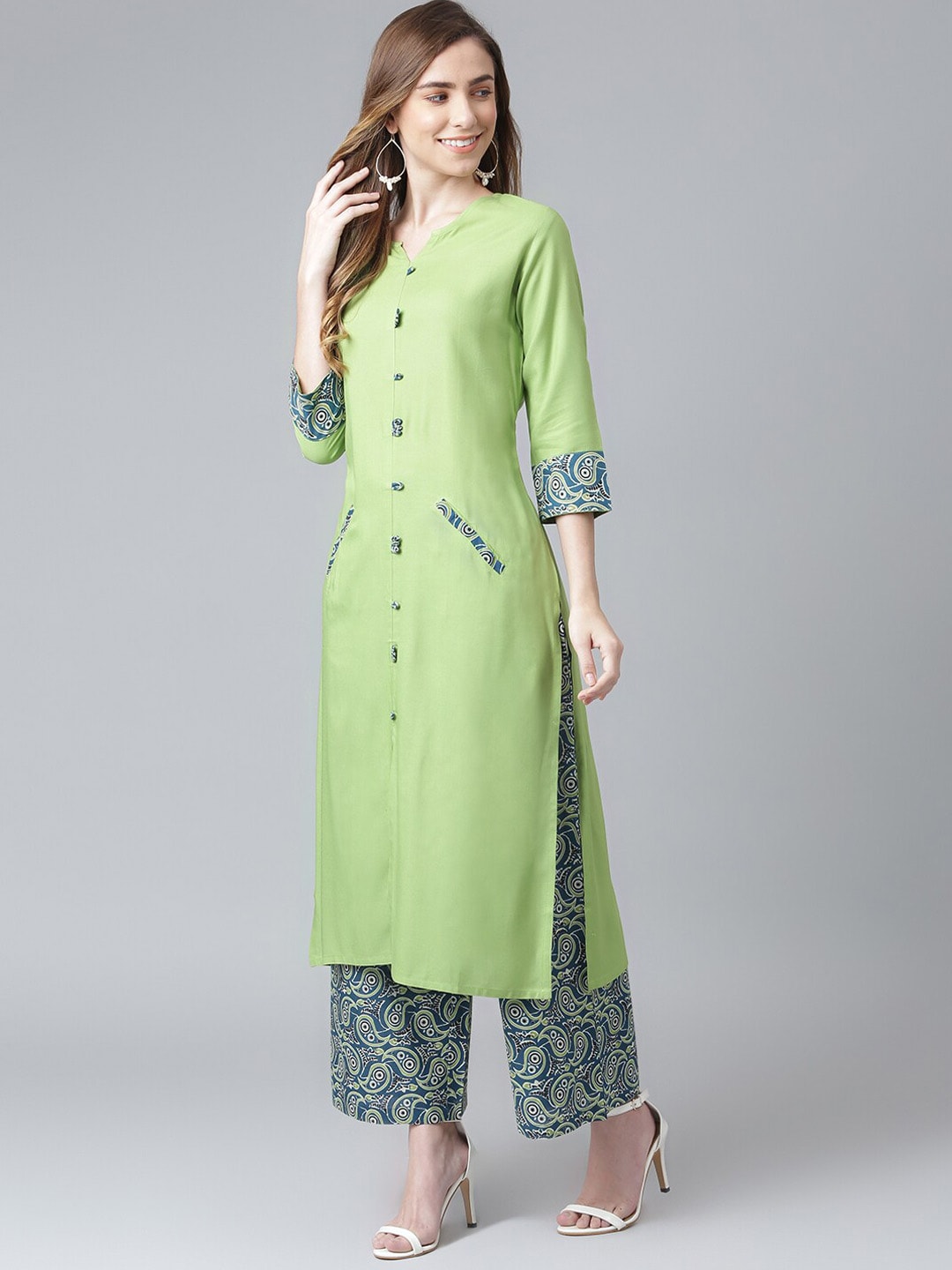 Green solid Kurta with Palazzos