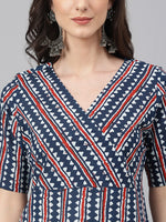 Janasya Women's Navy Blue Cotton Geometric Printed Casual Straight Kurta Color: Navy Blue Fabric: Cotton Work/Pattern: Geometric Printed Oc...
