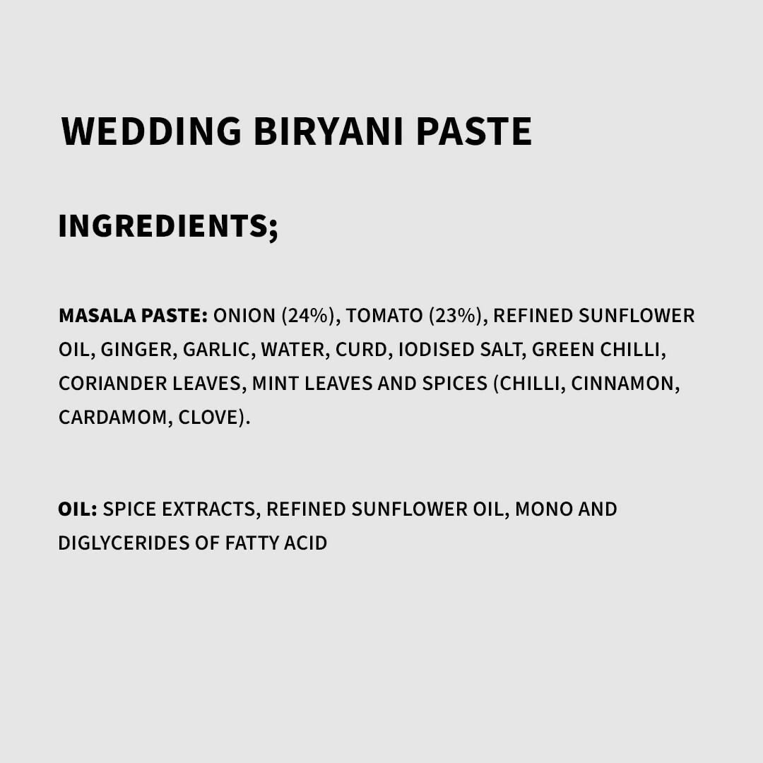 • Wedding Bhai Biryani Paste: A crucial ingredient used in the preparation of Biryani, this paste is carefully crafted by blending a variety of authentic spices, herbs, and seasonings. Whether you're a novice cook or an experienced chef, this Biryani Paste provides a convenient and delicious user-friendly way to create an authentic Biryani in the comfort of your own kitchen. Cook this, and let the celebration begin and become a memorable experience for you and your loved ones.