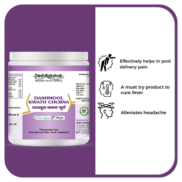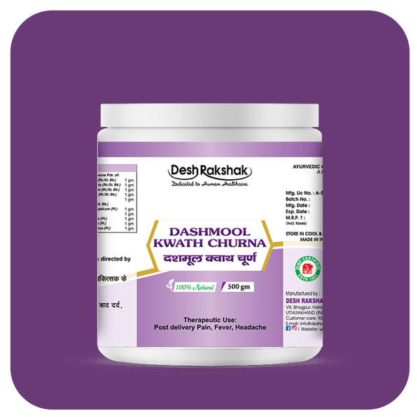 Desh Rakshak Dashmool Kwath Churna Key Benefits- Very useful in post-delivery pain to women. Beneficial in fever, headache, joint pain etc. Also e...