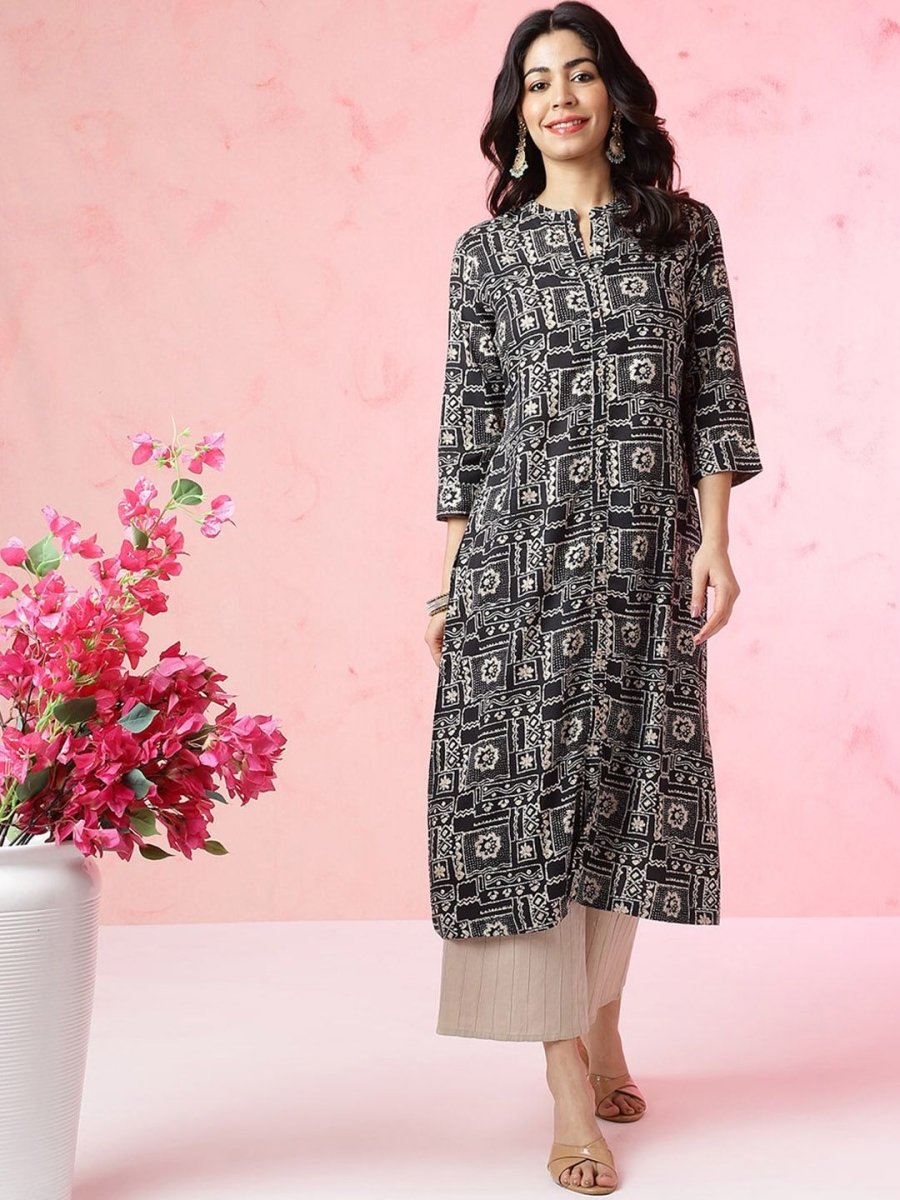 Anouk Abstract Printed Mandarin Collar Kurta Product Details Colour: black  Abstract printed Mandarin collar  Three-quarter, regular sleeves S...
