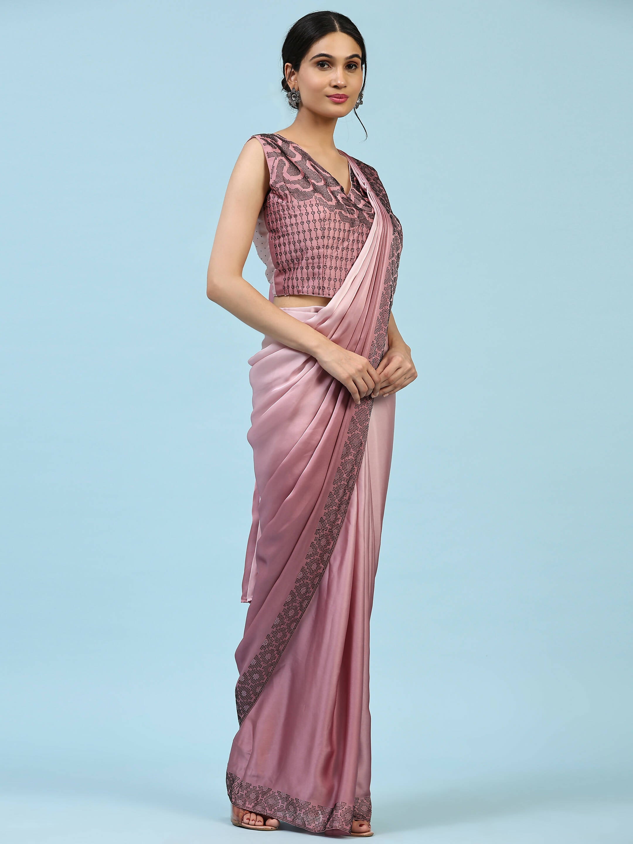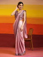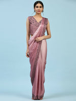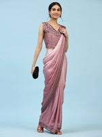 Purple Ombre Satin Georgette Plain Ready to wear Saree with stitched Blouse - Vrinda