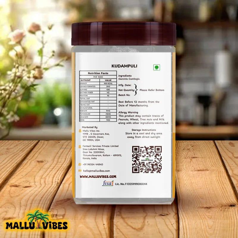 Mallu Vibes KudampuliKudampuli is a Tangy, sour Fruit used in Kerala Cuisine, known for its bold Flavor, perfect for adding a zesty kick to Fish Cu...