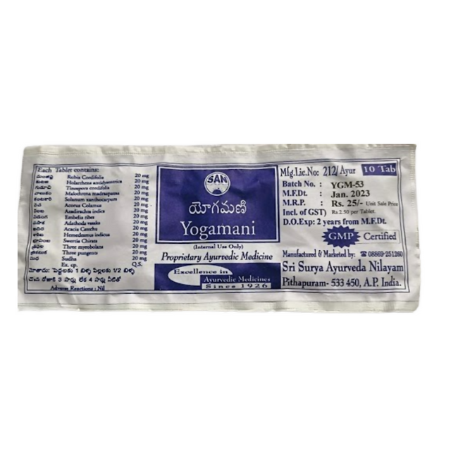 Sri Surya Ayurveda Nilayam Yogamani Tablets
