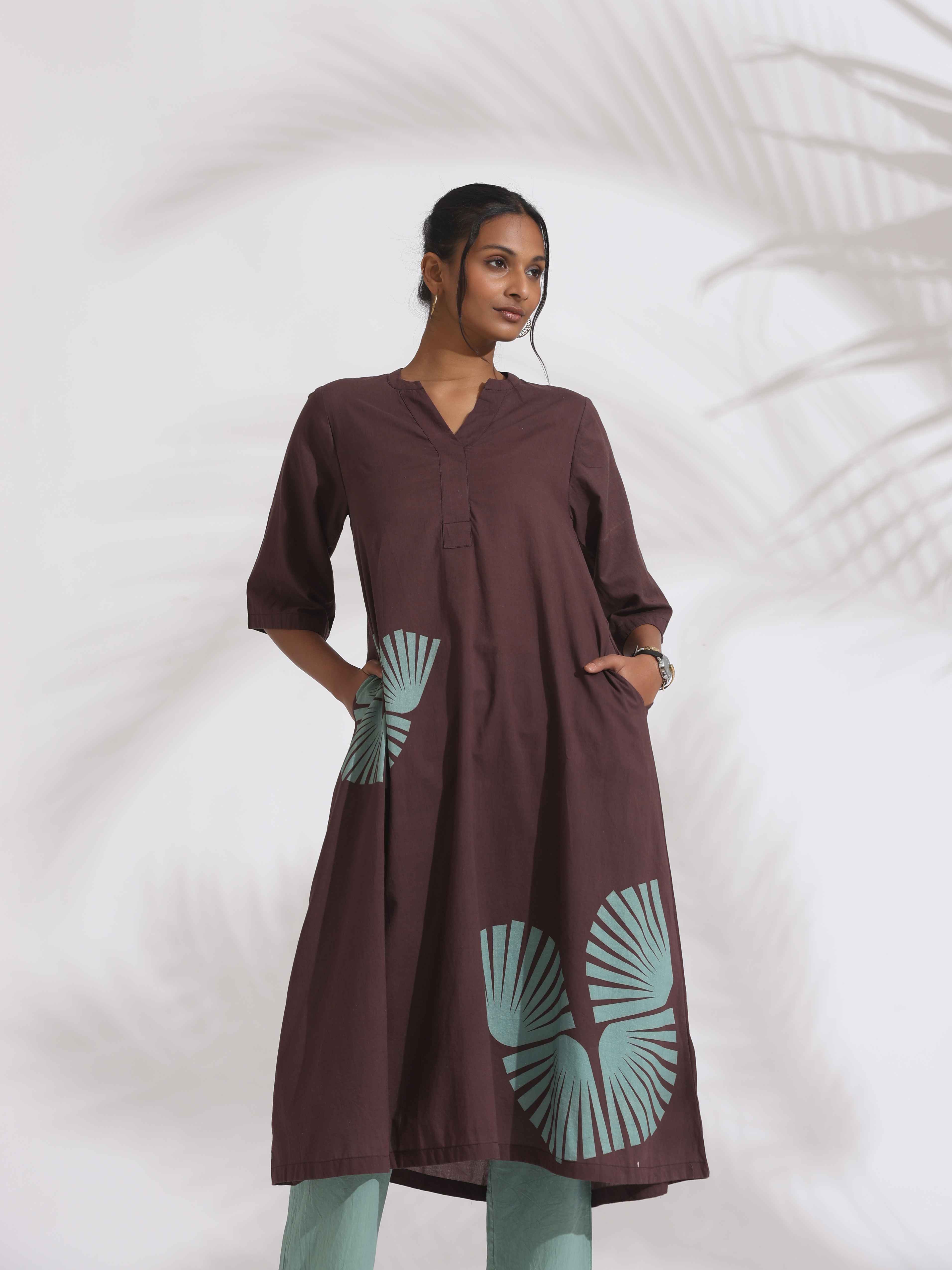 trueBrowns Cola Cotton Print Flared Kurta Set