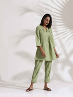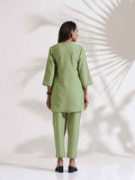 trueBrowns Green Slub Pleated Co-ord SetDescription Elevate your style with this green V- neck pleated top with green pants, it's an ideal blend of...