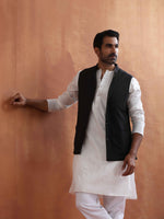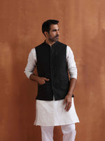 trueBrowns Men's Black Textured Cotton Dobby Nehru Jacket