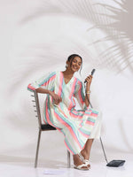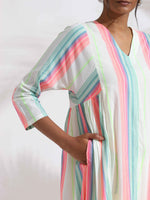 trueBrowns Off-White Cotton Multi Stripe Flared Kurta Set