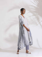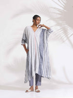 trueBrowns Off-White Cotton Multi Stripe Flared Kurta SetDescription Elevate your style with this off-white multi stripe free size flared kurta wit...