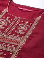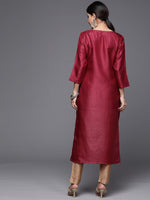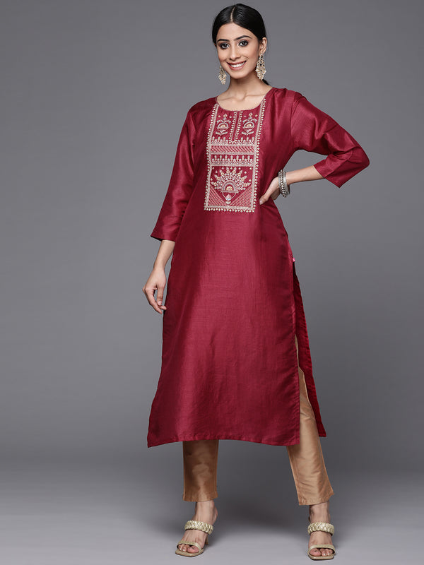 Magenta embellished gota patti work on kurta, with 3/4th sleeves, side slits, straight hemline and straight kurta.
