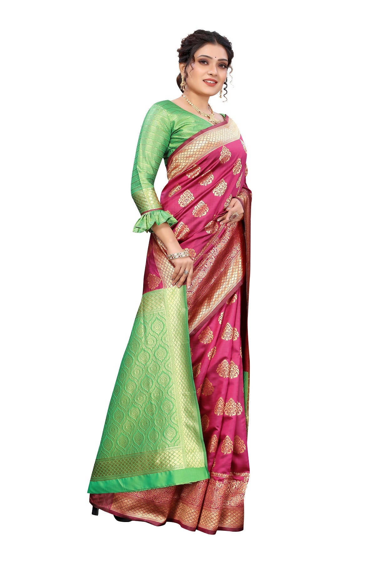 Vamika Ethnic Fire Pink Weaving Banarasi Jacquard Saree