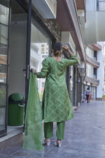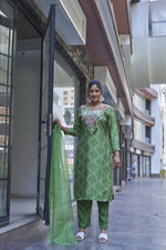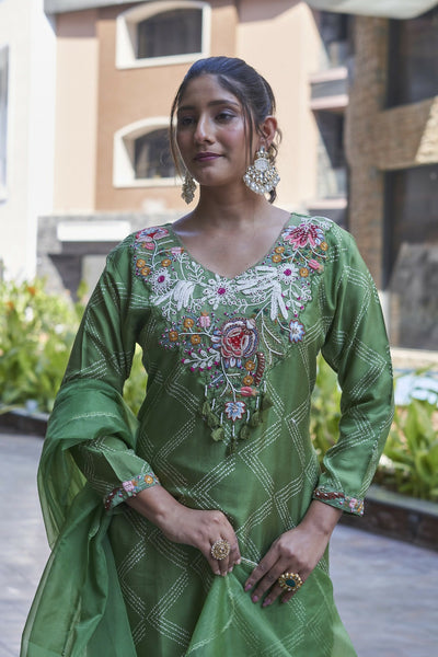 Joban Fashion Green Cotton Premium Pure Viscose Print Dola With Handwork Kurta set