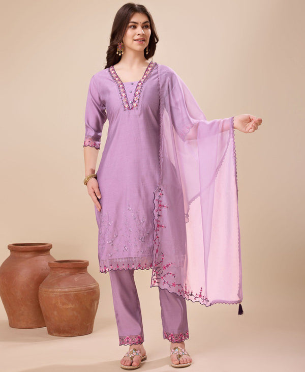 Prazu Fashion Lavender Viscose Silk Embroidered Kurta Set