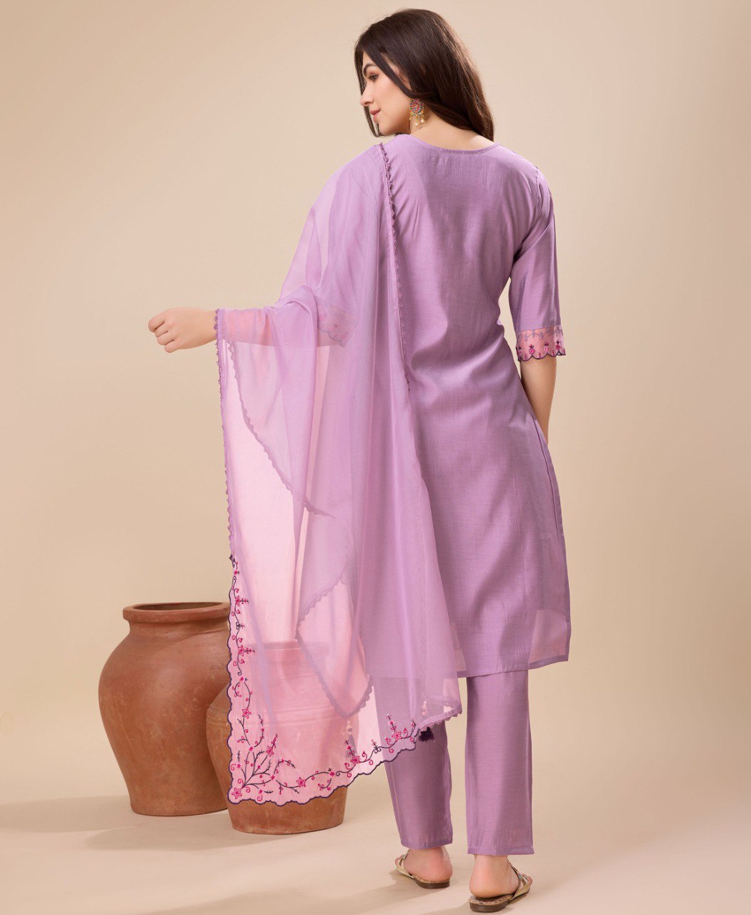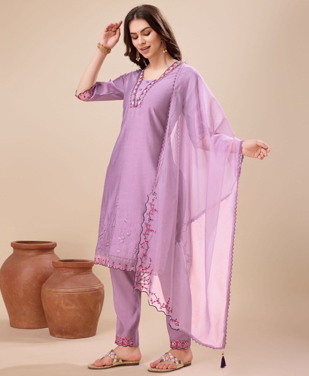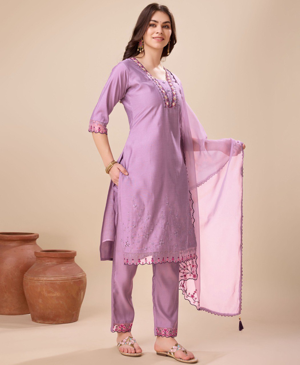Prazu Fashion Lavender Viscose Silk Embroidered Kurta Set About the Product: GENDER : Female Colour : Lavender Work/Pattern : Embroidered Fabric : ...