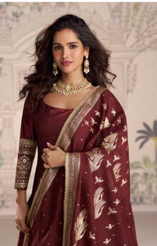 Aarshi Fashions Maroon Silk Wedding Gowns